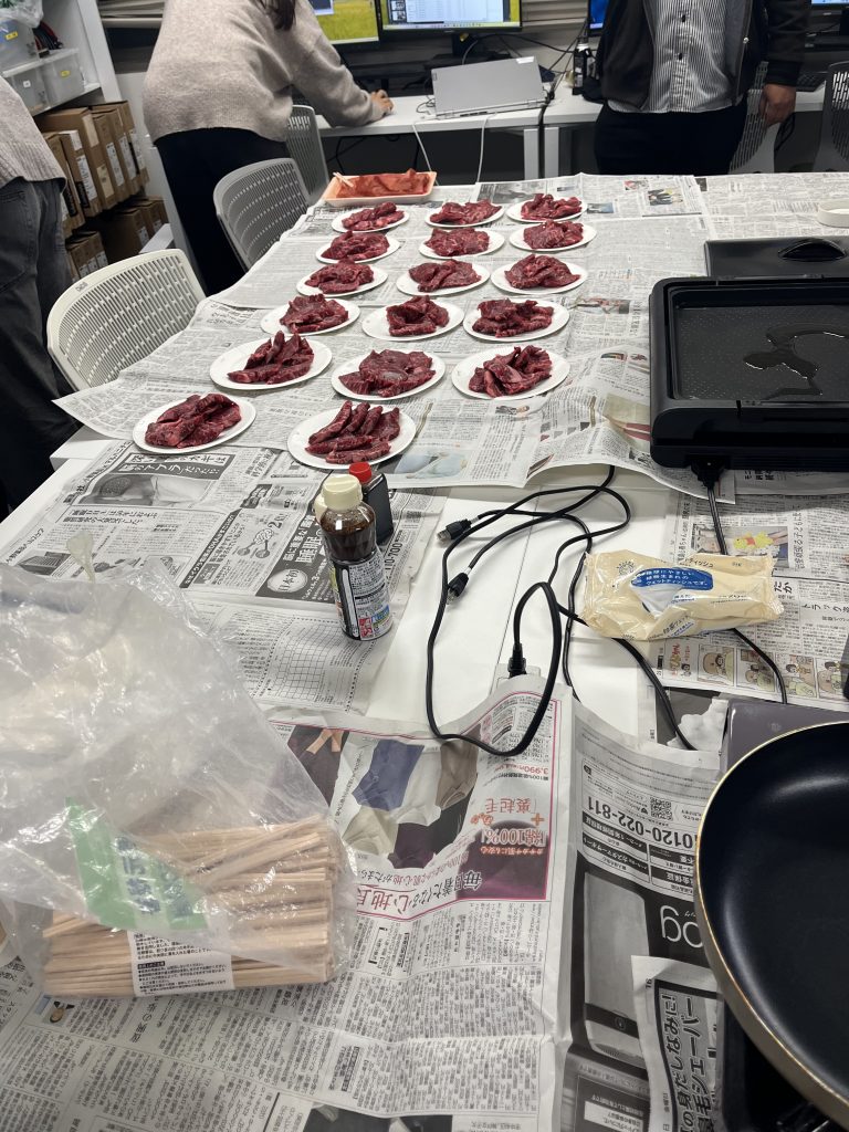 また,宮崎からのお土産,地鶏もみんなでいただきました!柚子胡椒とのセットでごはんもお酒もたくさん進みました!