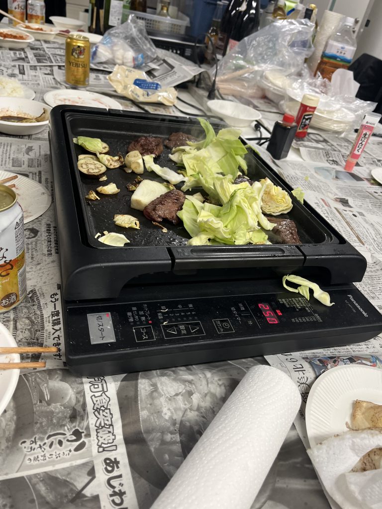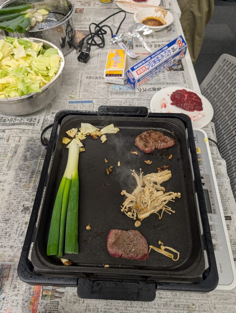 お肉だけではなく,キャベツや茄子,さつまいも,玉ねぎ,長ネギ,しめじなどを食べました!