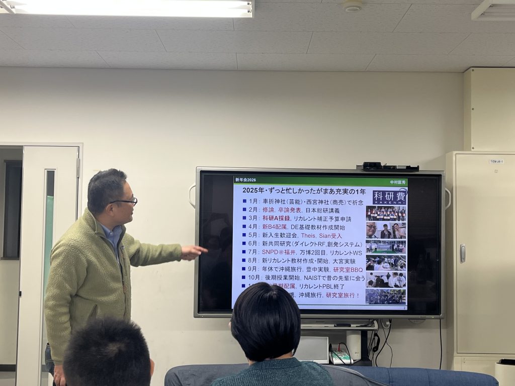そして,研究室メンバーみんなで,去年を振り返り,今年の抱負について発表しました!