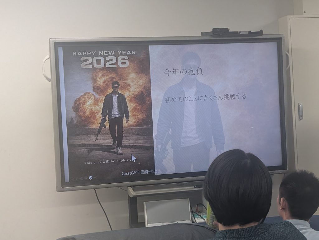 各個人が個性的なスライドを作成して,みんな暖かい空気で新年会が進みました!