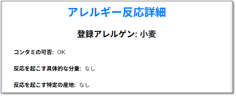 アレルギーデータサービスの実装にあたり、ユーザーがアレルギー情報の登録・確認を行い、QRコードを通して飲食店の従業員に表示できるWebアプリを作成しました。
